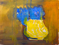 Well, it is (at least) my fav blue pot. The assignment was to use three colors. Does this qualify as blue, yellow ochre, and white? Ha.