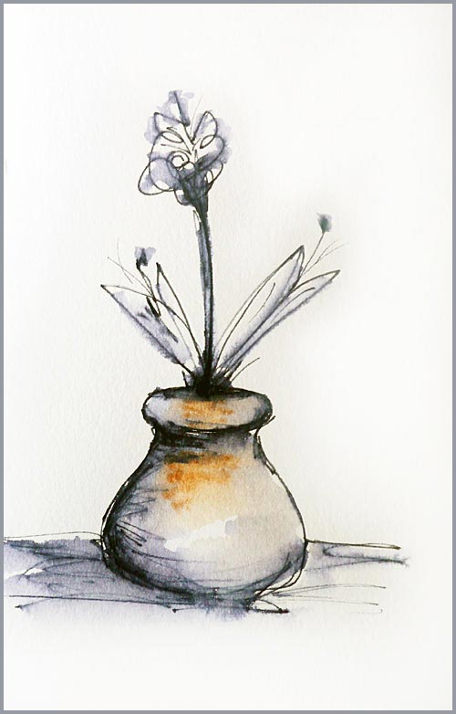Example: In Strathmore's 'Visual Journal' (90lb mixed-media paper), with a little Caran d'Ache Supracolor 'Burnt Sienna' watercolor pencil: